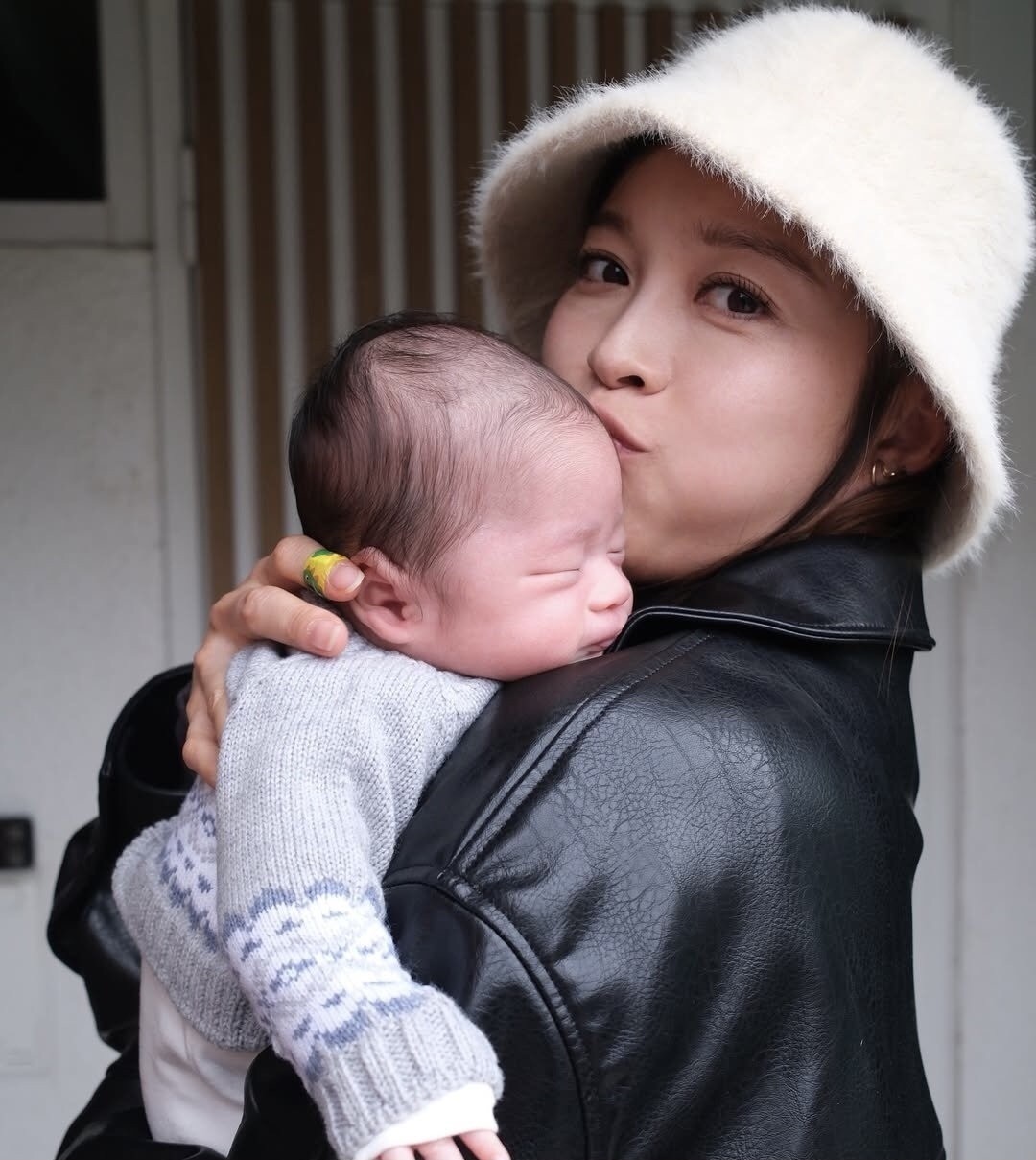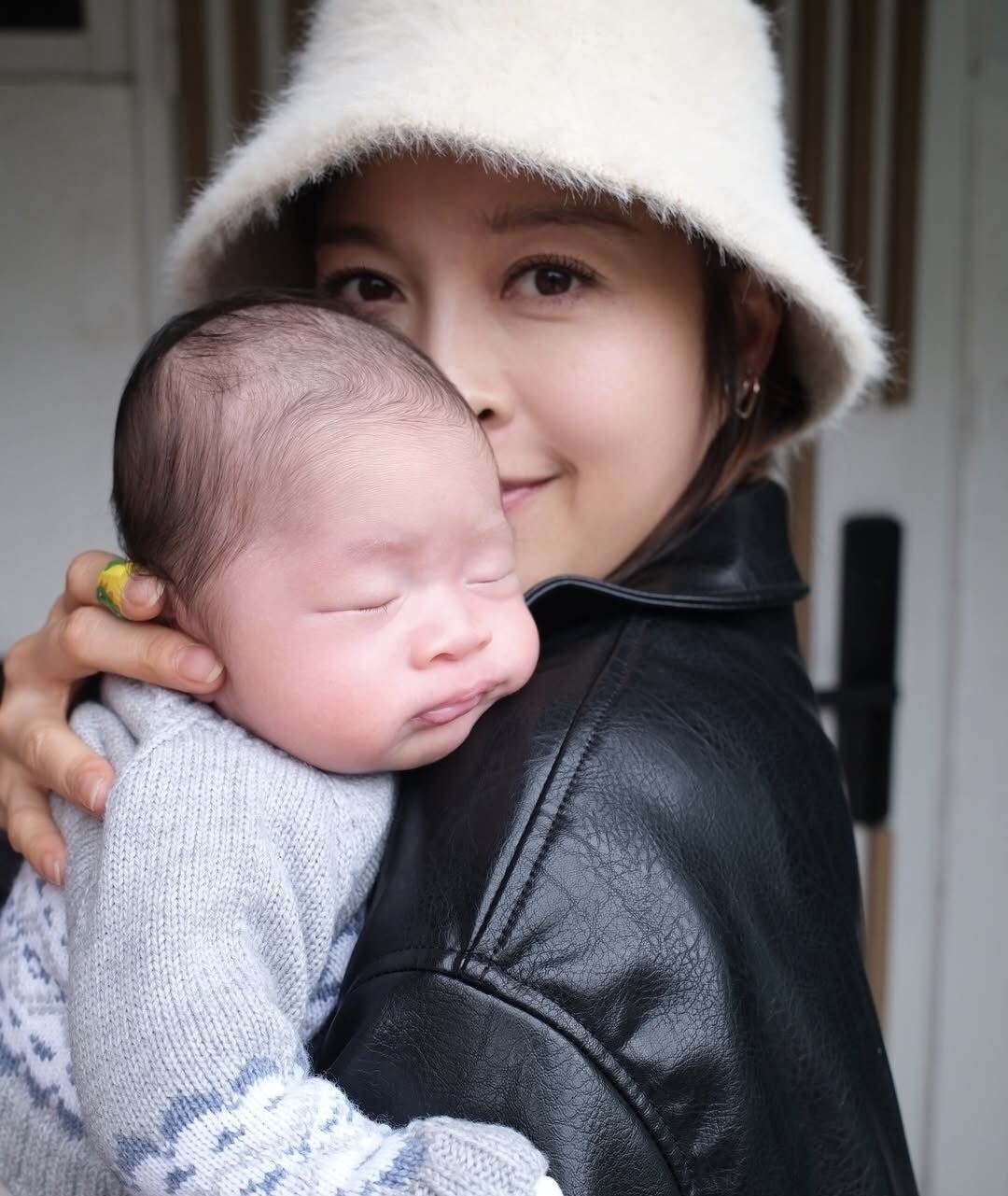 除了发文表达自己的喜悦之情,赖慰玲还晒出了几张和小儿子的合照,从照片中看得出,小家伙长得十分可爱,闭上眼睛的他好像还没有在睡梦中醒来,显然他的五官还没有长开,因此很难判断他长得像爸爸还是妈妈。
