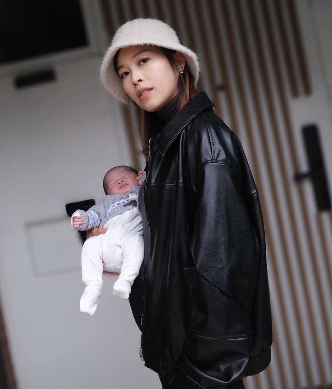 而作为妈妈的赖慰玲则是状态大勇,她穿着黑色的皮衣搭配休闲裤,头上还带着针织的渔夫帽,身材似乎也没有太大的变化,完全不像是刚坐完月子的人,难怪网友们都对其竖起大拇指。